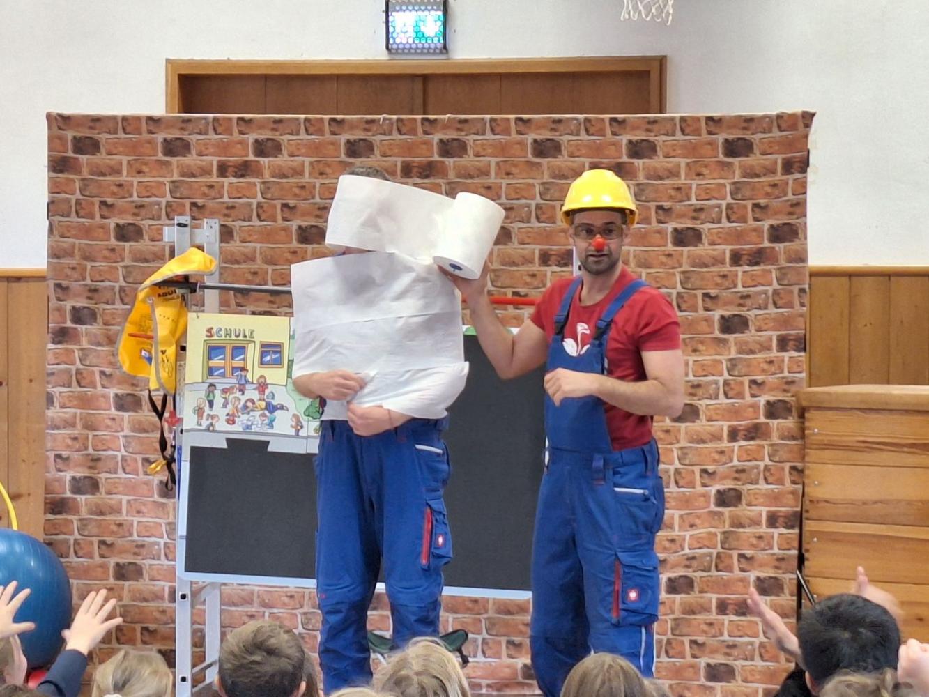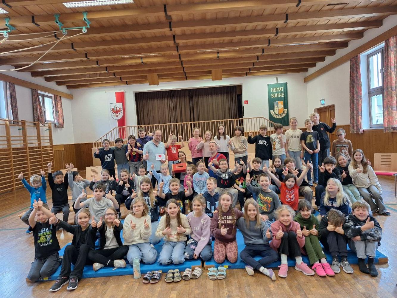 Am Donnerstag, den 12. März 2026, besuchten uns Bernd und Thomas vom Verein „Helfen mit Herz“ mit ihrem Theaterstück „Eine Hand voll Mut“. Dieser Tiroler Verein hilft dort, wo Hilfe gebraucht wird und unterstützt hauptsächlich Kinder, die während bzw. nach einer Krankheit Hilfe benötigen.