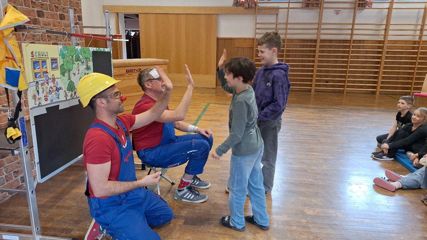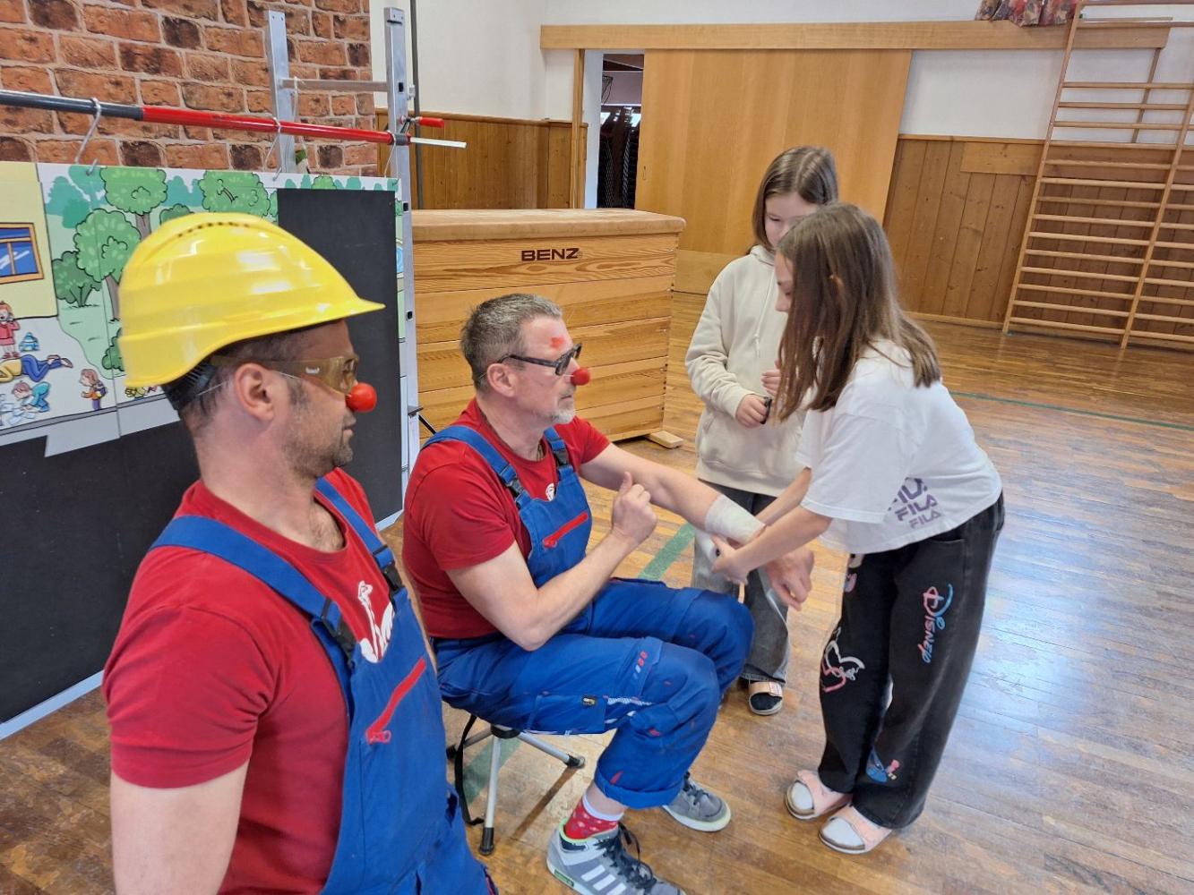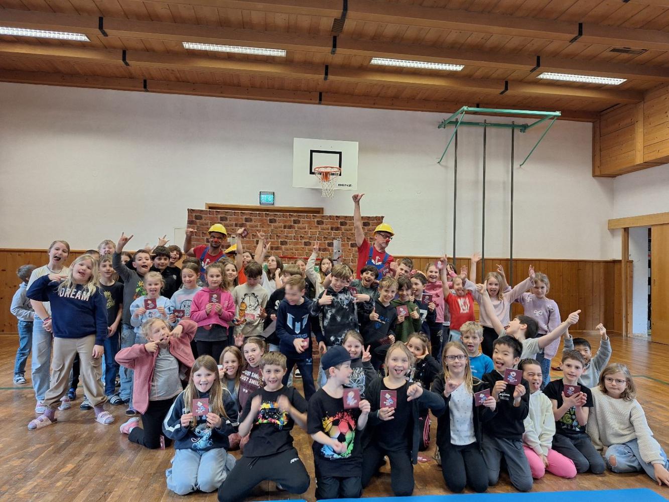 Die Kinder der Volksschule und des Kindergartens waren mit Freude und Begeisterung bei der lustigen und gleichzeitig lehrreichen Aufführung dabei. Es wurde gelacht und mitgedacht, überlegt, gerappt, Pflaster aufgeklebt und GEHOLFEN. Die Kinder erkannten, wie einfach es sein kann und wie wichtig es ist Mut zu zeigen, aufzustehen, auch mal NEIN zu sagen, Hilfe zu sehen und für jemanden da zu sein, der Hilfe braucht.