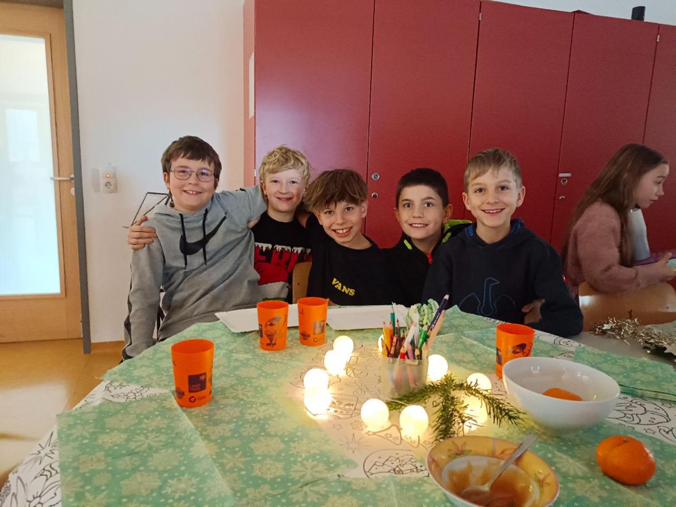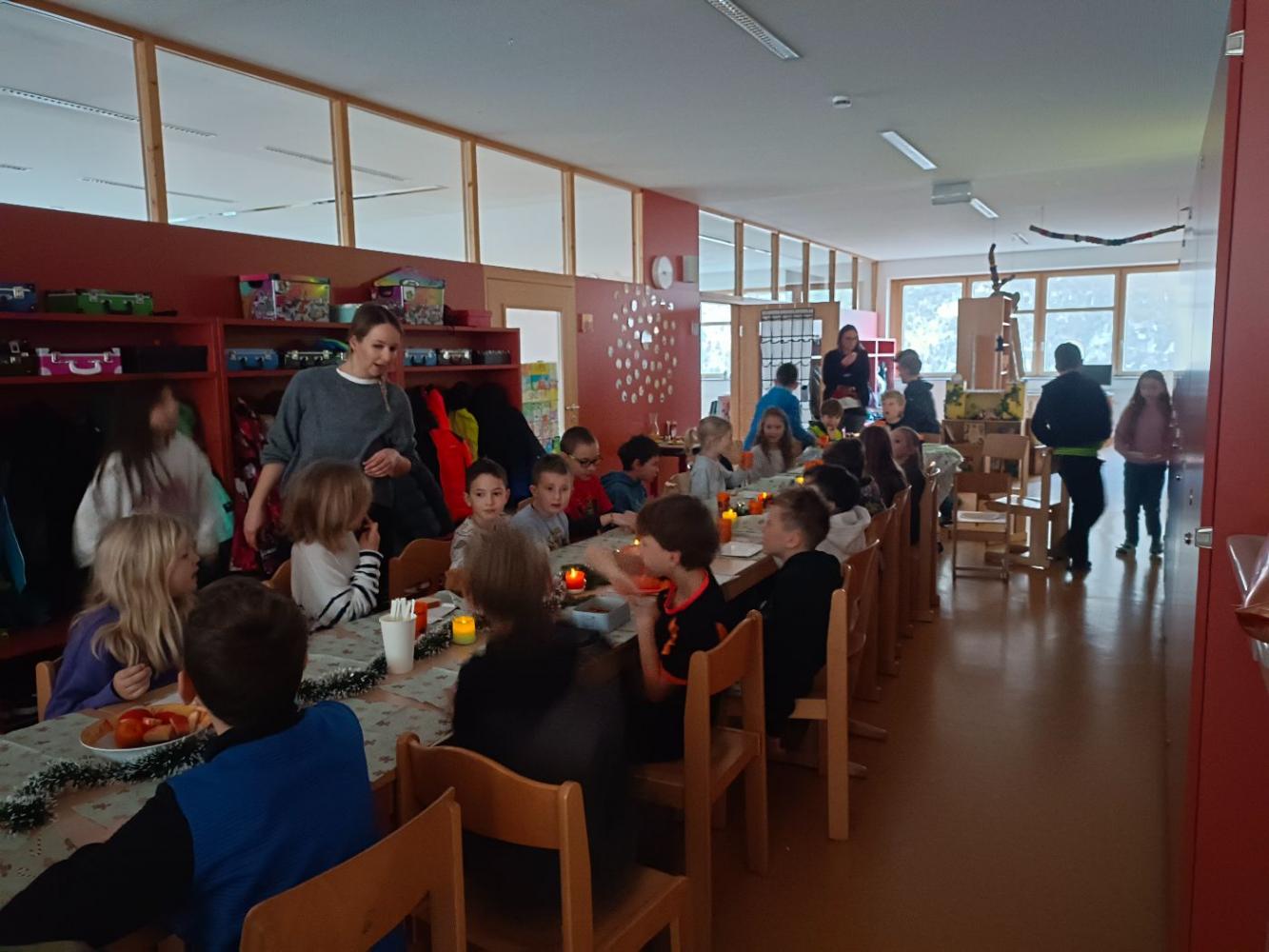 Die dritte und vierte Klasse nutzte den letzten Tag vor Weihnachten für ein gemeinsames Weihnachtsfrühstück und eine Spielestunde. Alle Kinder hatten sichtlich Spaß und genossen die weihnachtliche Stimmung, den Duft nach Tee, Keksen und Zimt.